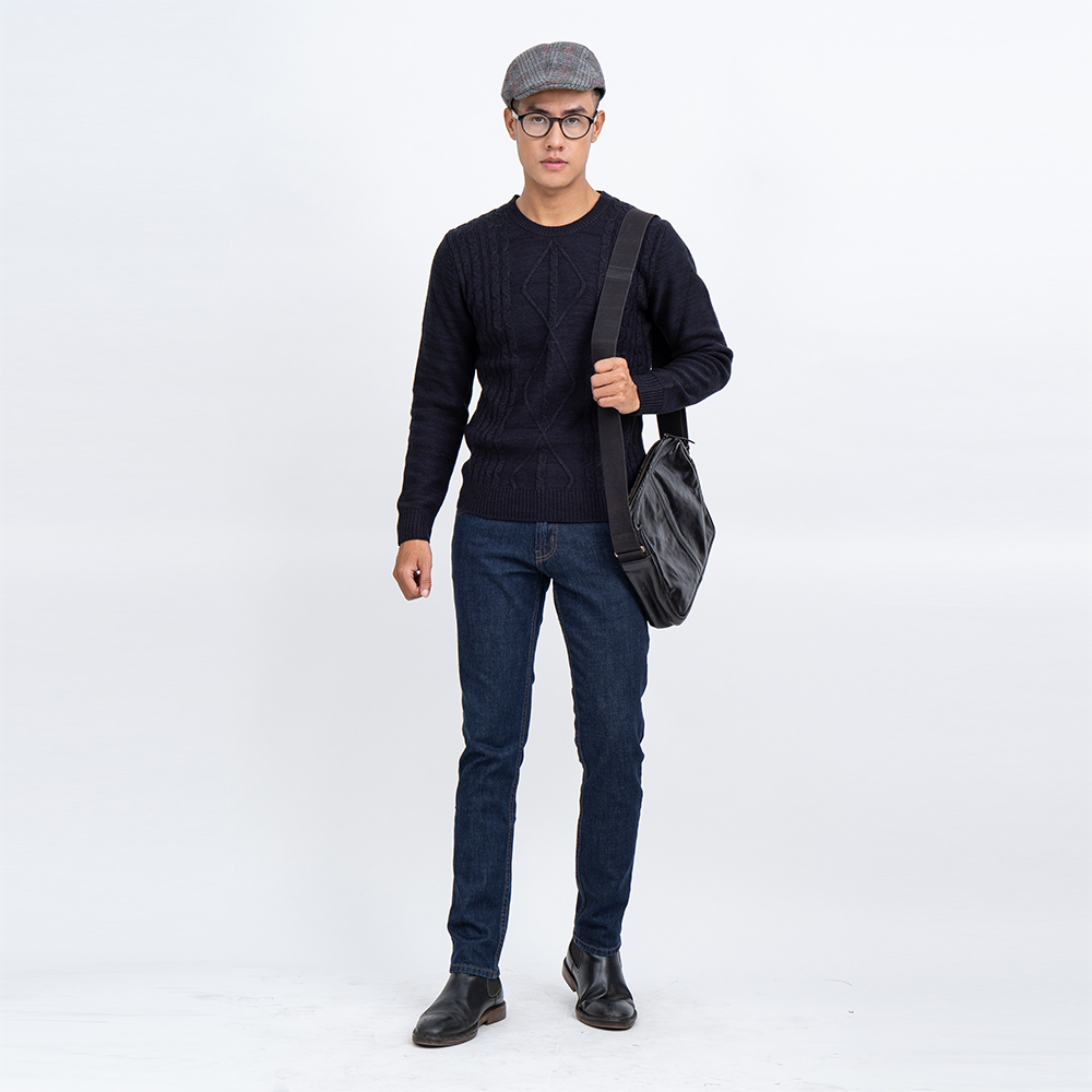 Áo len tay dài cổ tròn hoa văn hình thoi dành cho nam