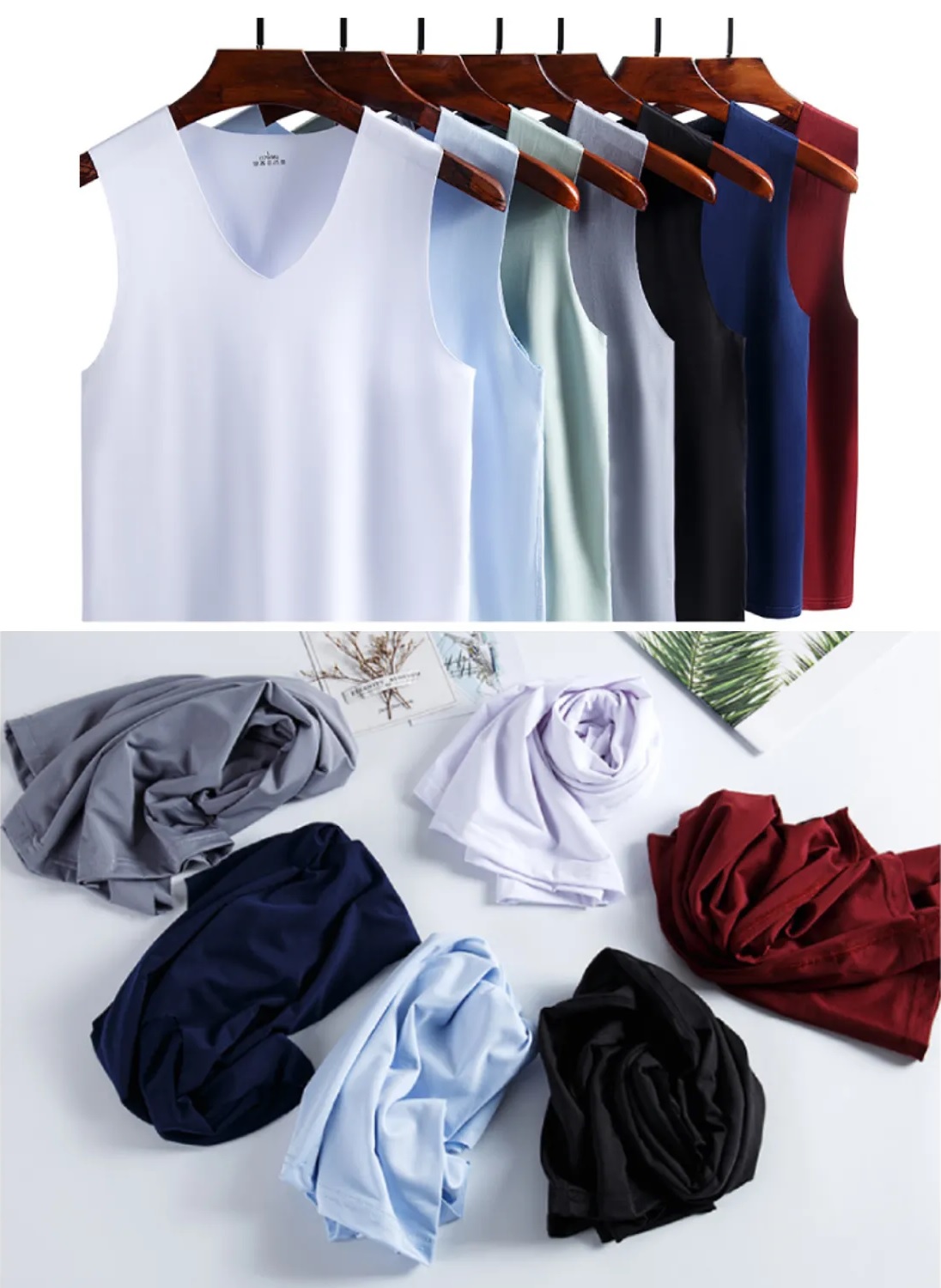 Áo lót nam áo ba lỗ body sát nách cổ chữ V vải lụa lạnh mát không đường may cao cấp Áo lót nam, áo ba lỗ Lụa lạnh cao cấp không đường may tập