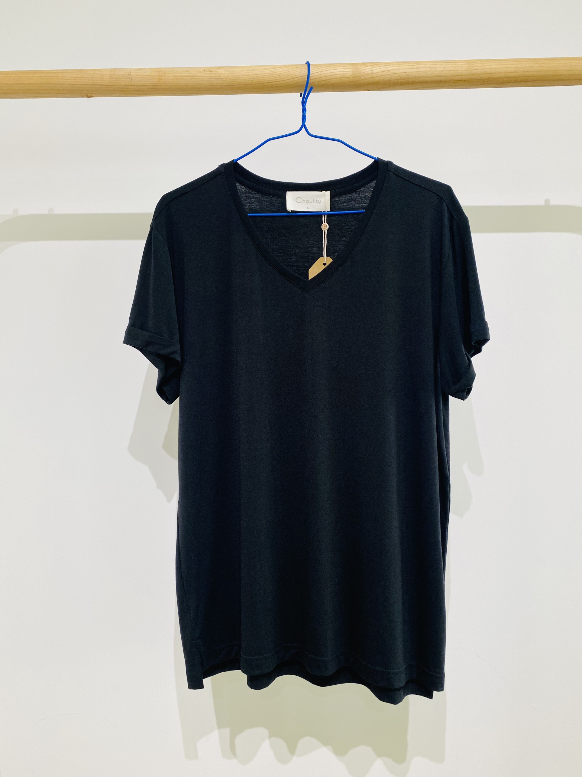✨Áo phông trơn cổ tim tay gập unisex vải Tencel tự nhiên