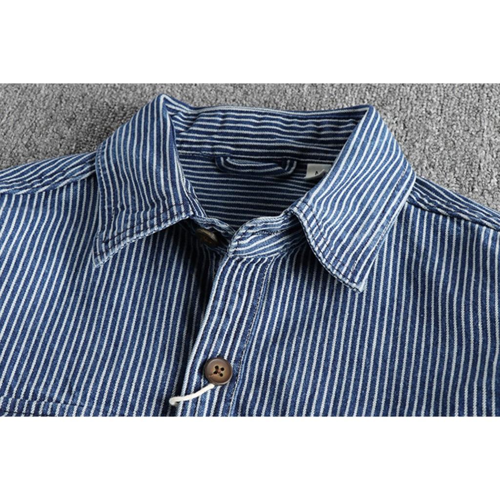 Áo sơ mi denim sọc phong cách Retro_Biker_Army Áo sơ mi Wild Casual Màu đang hot lắm ạ Chất vải denim sọc cực bụi , phom chuẩn mặc rất đẹp ạ Size: M: từ 55-65 kg L: từ 65 - 73 kg XL: từ 73 -80 kg XXL: từ 80 - 87 kg XXXL: trên 87 kg
