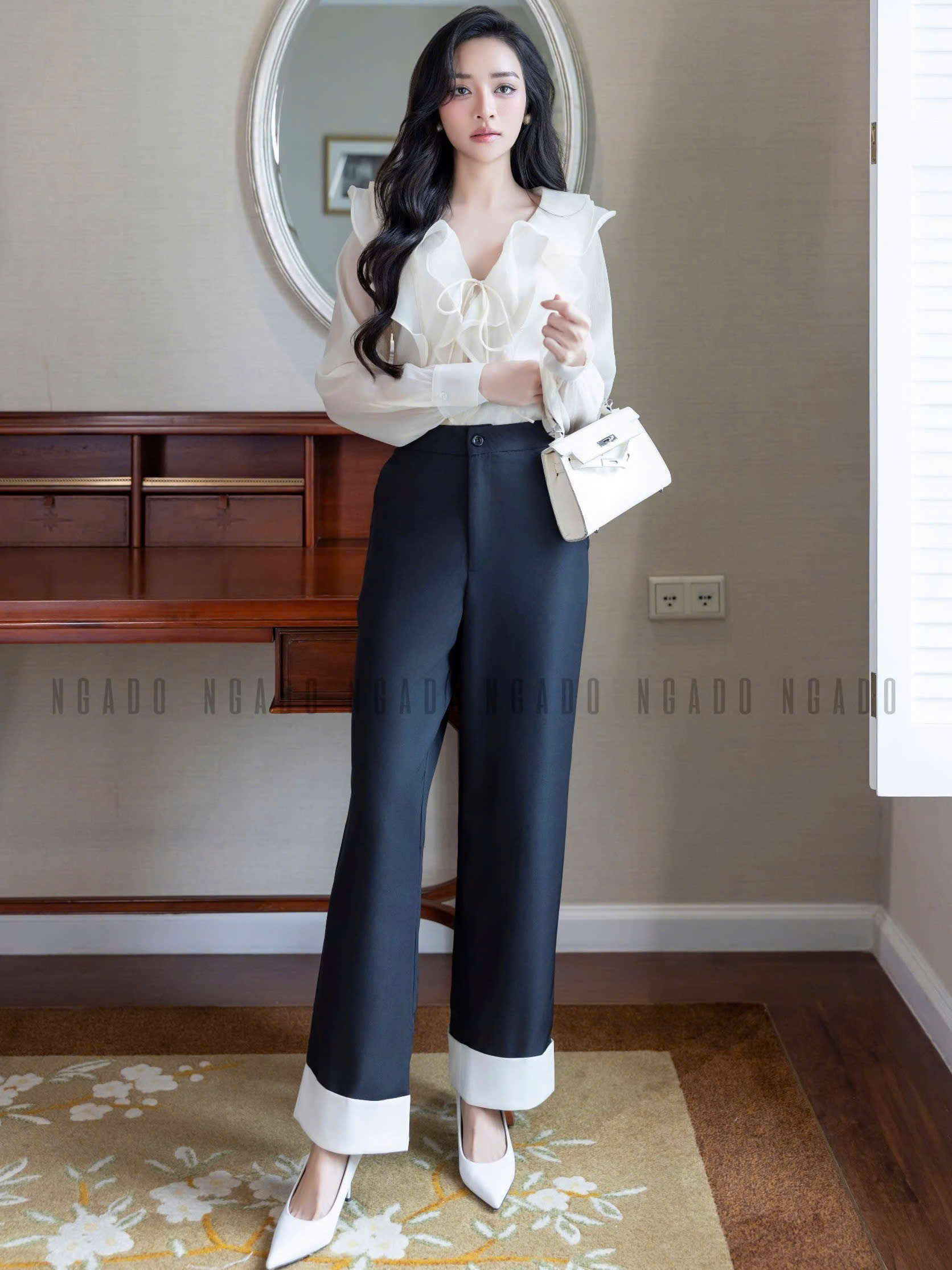 ✨Áo sơ mi kem dài tay NGADO , áo voan tơ , áo công sở