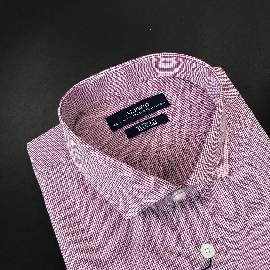 ✨Áo Sơ Mi Nam Đỏ Trắng Ngắn Tay Công sở Cotton Dáng Ôm Thoải Mái Không Nhăn Xù ALIGRO ALGS-C97