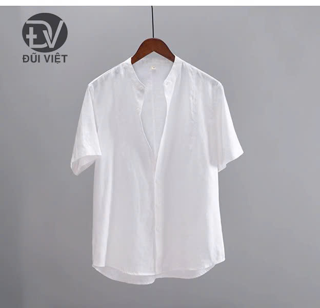 ✨áo sơ mi nam ngắn tay cổ trụ thiết kế trơn dễ phối đồ sang chảnh, thanh lịch
