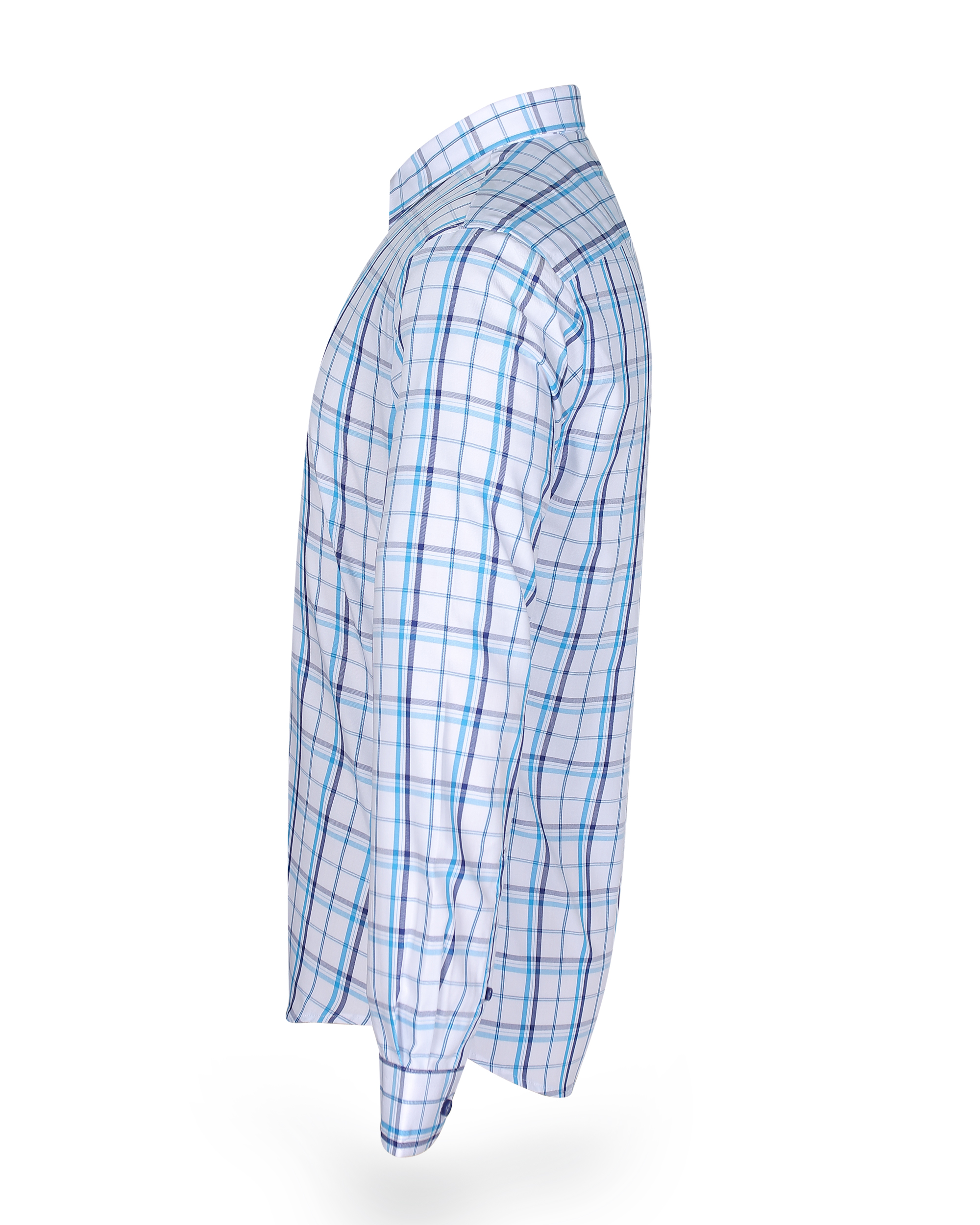(V) MÔ TẢ: Form Taylor, tai dài Form áo tiêu chuẩn với form áo rộng vừa phải, không ôm sát cơ thể, bó nhẹ ở vùng eo và tay áo. Độ rộng vùng ngực và nách cũng sẽ fit hơn với cơ thể. Không quá rộng như form áo cổ điển. Màu vải nhã nhặn và trung tính dễ dàng phối trang phục tạo sự lịch lãm, nam tính Nút ton-sur-ton khắc logo đẹp mắt phối trọn vẹn màu áo. Logo thêu sắc nét trên túi áo. Chất liệu:50%POLYESTER- 24%COTTON-2%SPANDEX- 24%VISCOSE(BAMBOO) |Mềm mịn|Thấm hút |Kháng khuẩn|Độ thoáng khí cao|Chống tia UV|Chống nhăn|Chống co rút |Nhanh khô|Dễ vệ sinh làm sạch|Đứng phom áo Màu sắc : Màu Xanh họa tiết