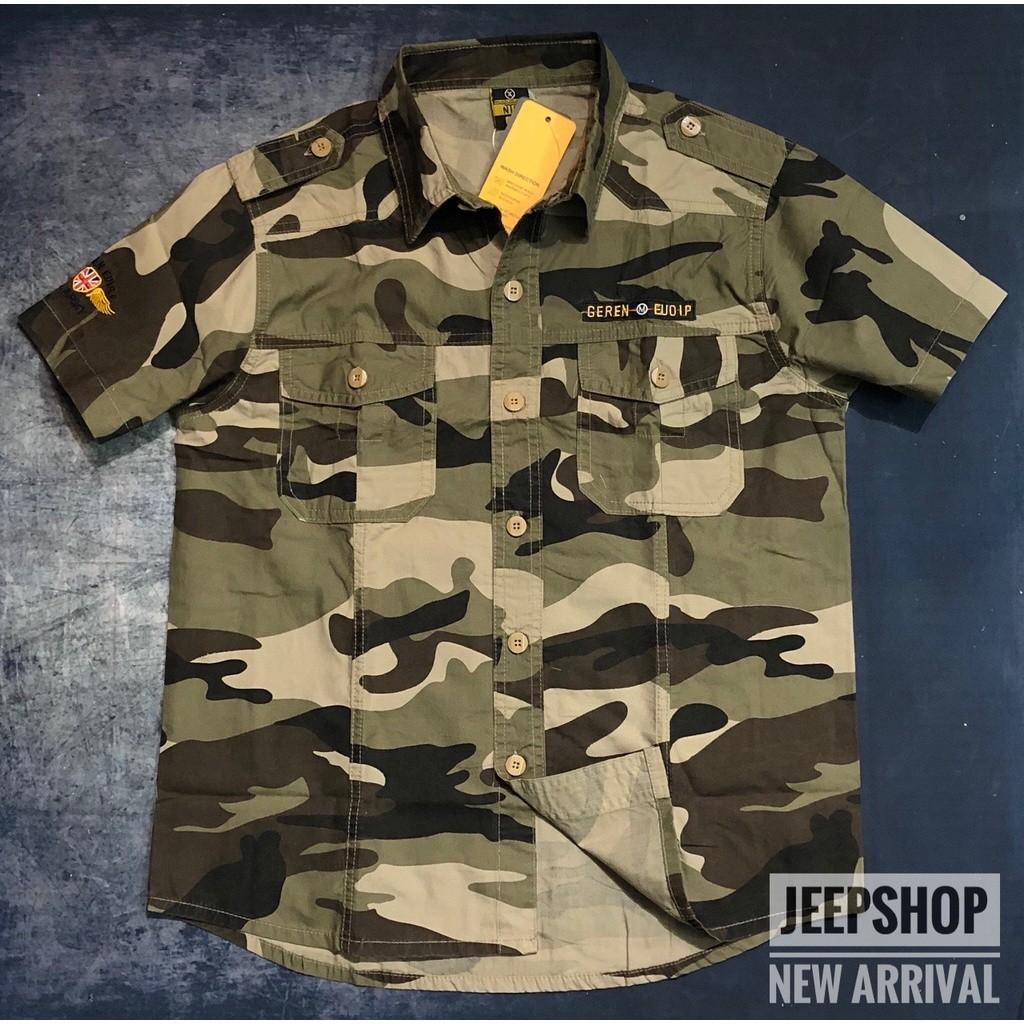 Áo sơ mi ngắn tay màu camo Chất liệu vải kaki mềm mịn mặc cực kỳ dễ chịu Phom áo thoải mái phù hợp với thời tiết nóng ẩm xữ nhiệt đới Size: S: từ