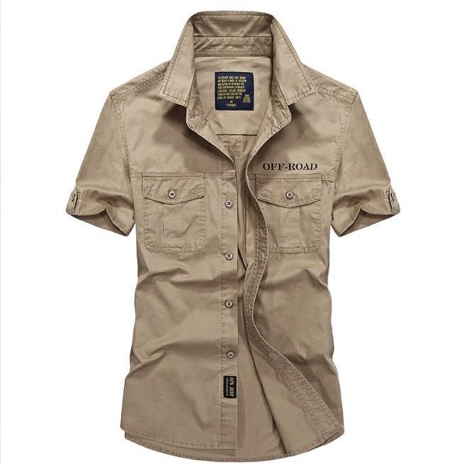 Áo sơmi tay ngắn phong cách off road dã ngoại Được làm bằng chất liệu kaki mềm mặc rất bụi và đúng phom áo Chất liệu vải dày vừa phải nên có thể mặc bình