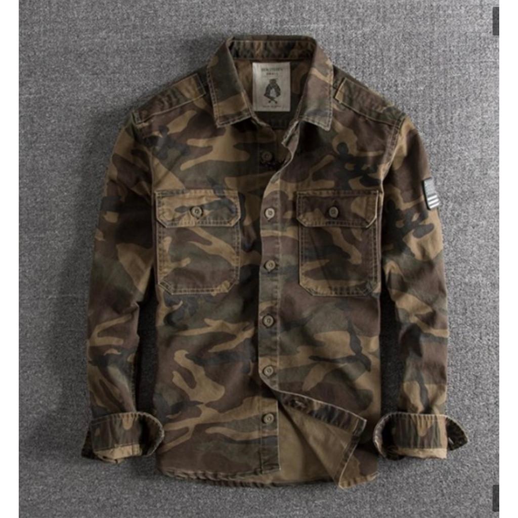 Áo sơ mi túi hộp phong cách Retro_dã ngoại Áo sơ mi chiến thuật Màu đang hot lắm ạ Chất kaki được wash acid cực bụi , phom chuẩn mặc rất đẹp ạ Size: M:
