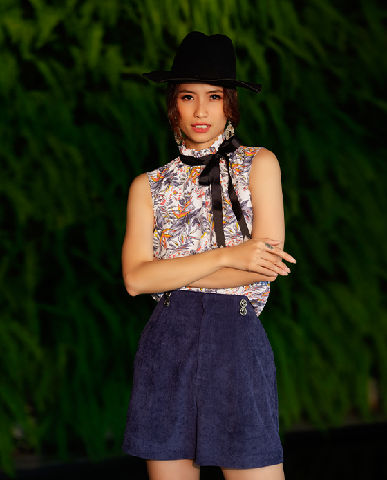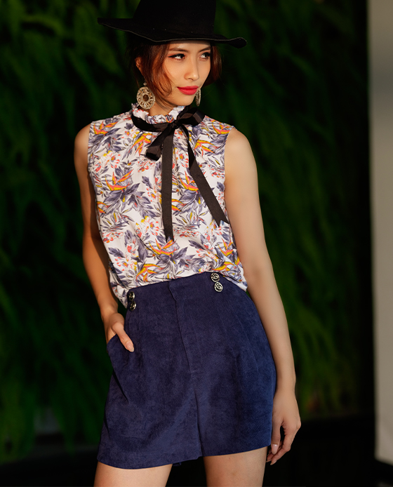 Cổ cao viền bèo, ruy băng gân viền thắt nơ cổ