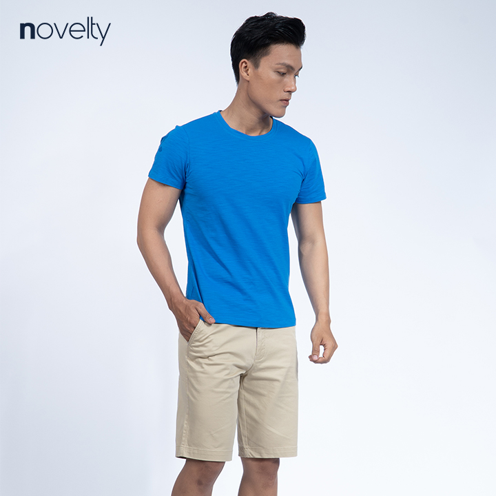 ✨Áo thun nam cổ tròn NOVELTY trơn màu xanh da trời 190154N