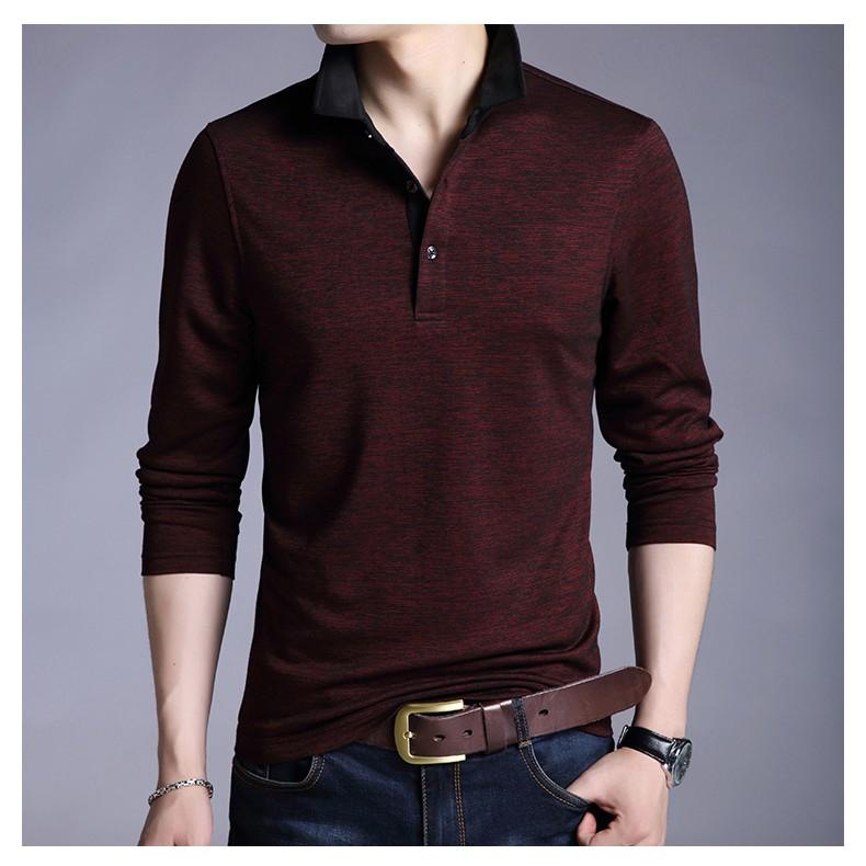 ✨ÁO THUN NAM DÀI TAY CỔ SƠ MI PHONG CÁCH HÀN QUỐC ATD01-ĐỎ ĐÔ