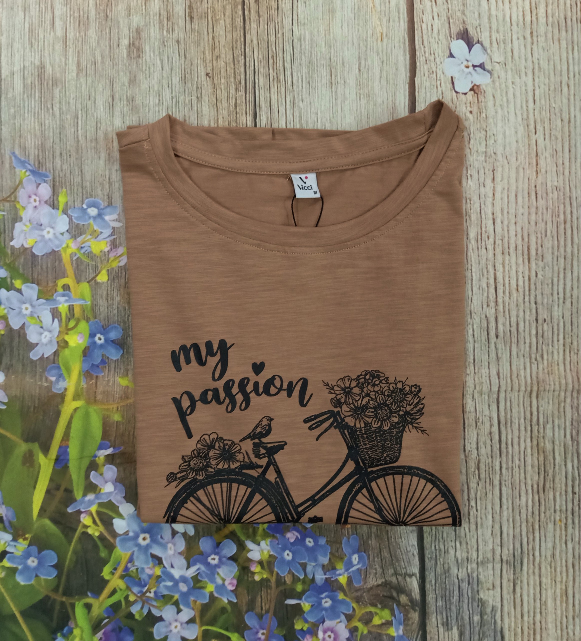 Áo Thun Ngắn Tay, Áo Phông Cộc Tay Nữ Vicci AP.01.1 chất liệu cotton vân gỗ phối hoạ tiết hình Xe đạp được may từ chất liệu vải cotton vẫn gỗ, thiết kế đơn giản đem lại cho người mặc cảm giác thoải mái dễ chịu.
