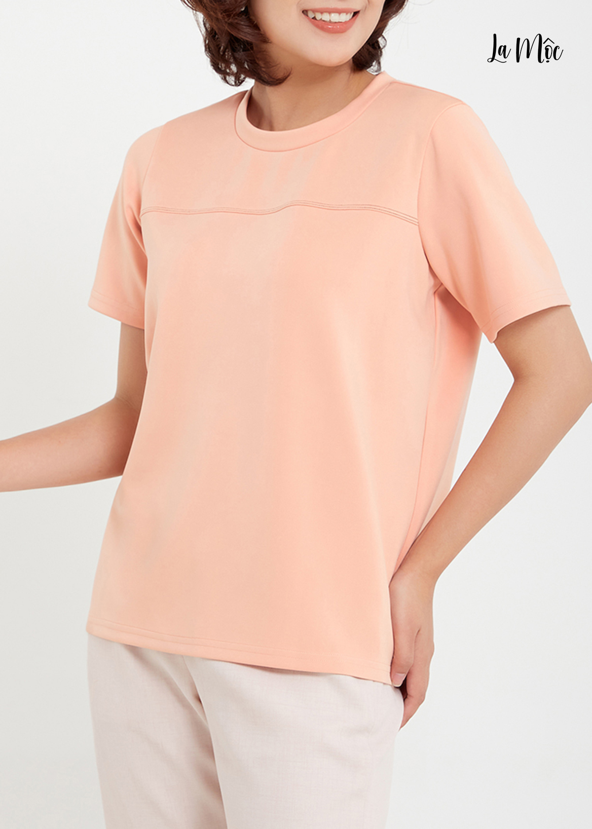 Áo thun nữ, áo thun LA MỘC cổ tròn, phối chỉ nối ngực, chất liệu Cotton poly, hàng thiết kế