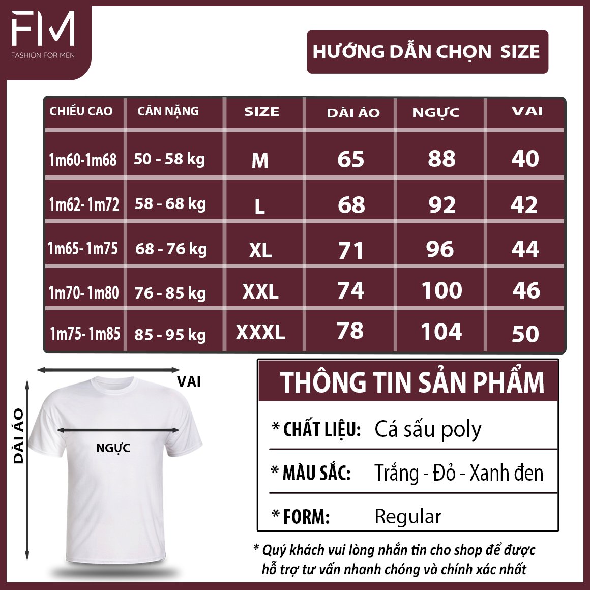 Chất liệu thun cá sấu co giãn, mặc thoáng mát, thấm hút mồ hôi Có đủ size từ M đến XXL cho người từ 50kg đến 85kg mặc thoải mái. Size chỉ tính theo cân
