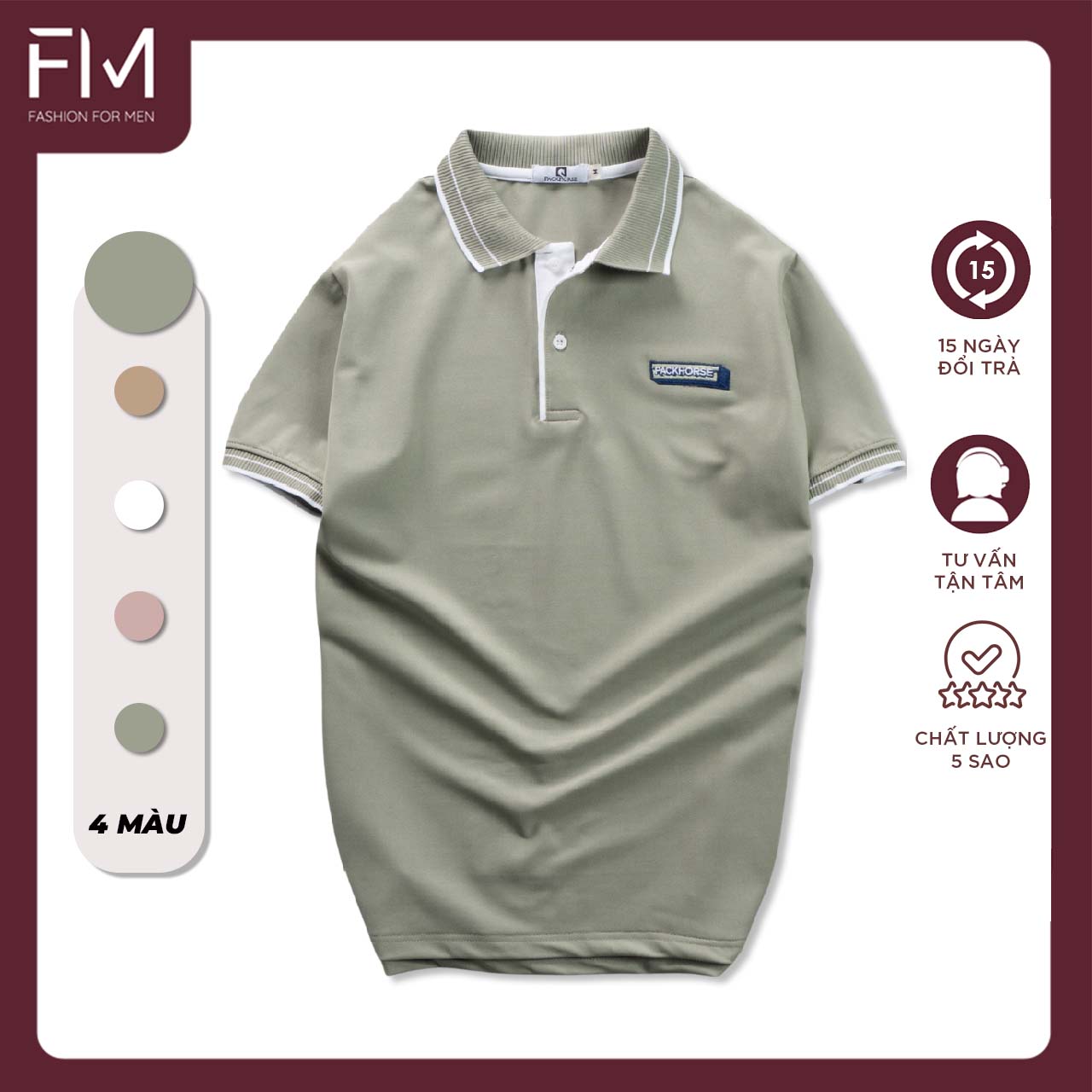 Áo Thun Polo VIỆT PHÁP cao cấp mềm mại thoáng khí - Chất liệu: Cold Silk - Polyester - Spandex - Size: 48 - 50 - 52 - 54 - Màu: 5 màu - Kiểu dáng: Màu sắc basic thanh lịch và trẻ trung, công nghệ ép nhiệt, không đường may, giúp nâng tầm trải nghiệm cho phái mạnh. - Form chuẩn với vóc dáng người Việt Nam ĐẶC ĐIỂM NỔI BẬT Sợi cold silk mát lạnh, thấm hút mồ hôi cực kỳ hiệu quả, kết hợp sợi spandex tăng cường khả năng đàn hồi, giữ form dáng áo qua thời gian sử dụng. - Công nghệ vải chống nhăn phối hợp quy trình nhuộm cao cấp, không gây kích ứng da, phòng ngừa vi khuẩn, chống tia cực tím cho người sử dụng - Toàn bộ nguyên liệu được nhập từ nước ngoài. HƯỚNG DẪN GIẶT ỦI - Giặt máy với chu kỳ trung bình và vòng quay ngắn - Giặt với nhiệt độ tối đa 30 độ C - Sấy ở nhiệt độ thường - Là ủi ở nhiệt độ thấp QUYỀN LỢI CỦA KHÁCH HÀNG