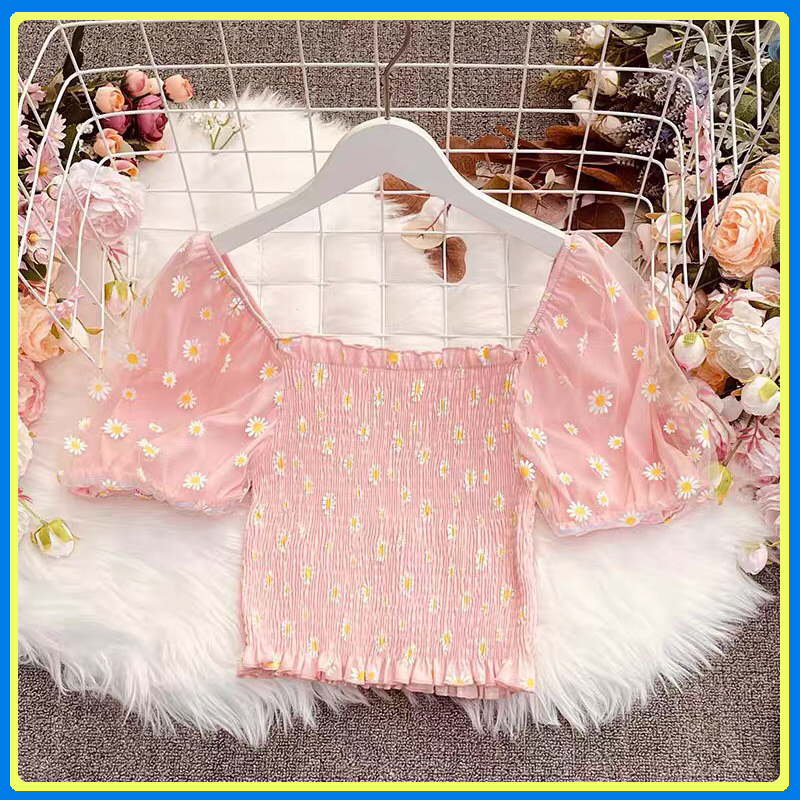 - Áo kiểu crotop phần thân áo bo chun co giãn, tay phồng mix chất voan lưới siêu xịn xò. Áo với họa tiết cúc họa mi xinh xắn đang được lòng phái đẹp. Sắm ngay một chiếc về đi dạo, cà phê với bạn bè hay du lịch sống ảo đều xinh lung linh ạ!