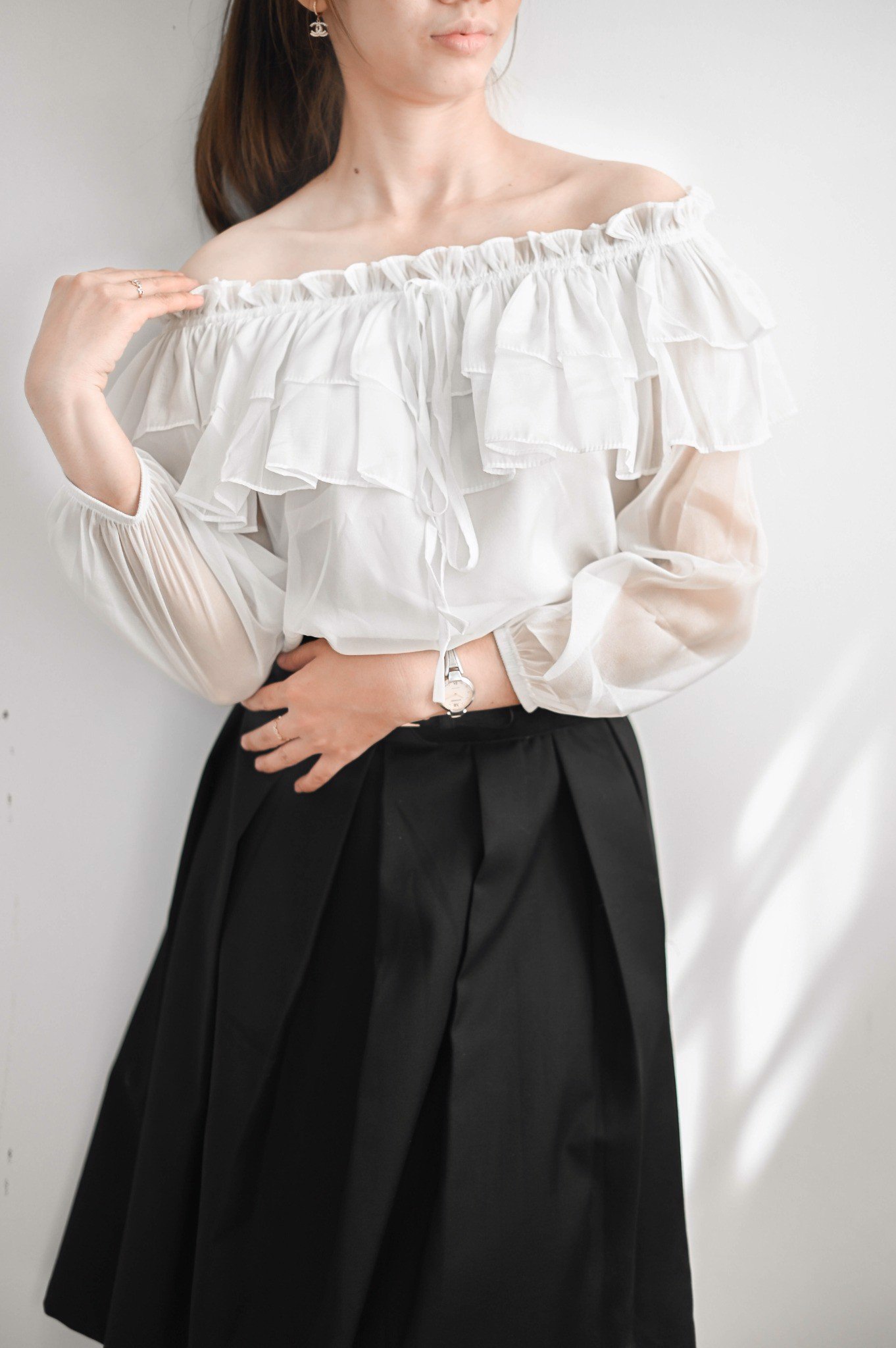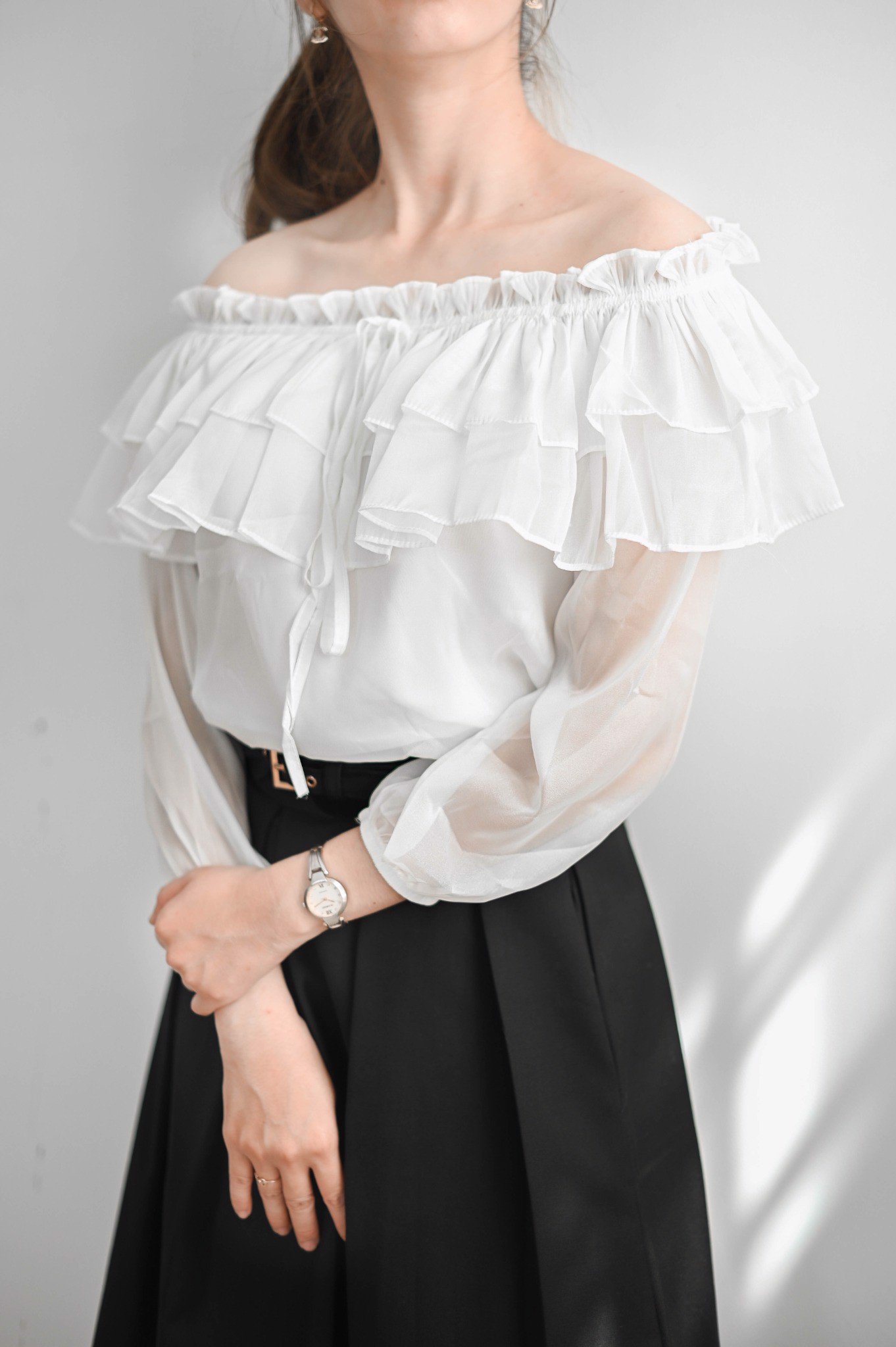 Áo vải nữ với thiết kế trễ vãi quyến rũ và đầy nữ tính, phần vai được thiết kế thun chắc chắn giúp cho bạn có thể tăng chỉnh độ trễ vai của áo 1 cách thoái mái Tay áo dài có bo thun ở tay giúp tay áo thêm phần gọn gàng hơn Áo có thể phối với nhiều loại chân váy hoặc quần khác nhau để tạo nên nững bộ out fit trẻ trung năng động của riêng bạn