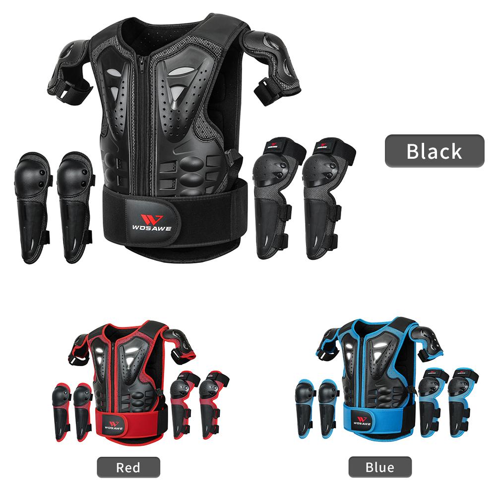 The protective gear set includes an armor vest, a pair of elbow pads and knee pads, providing full protection for your kids when riding, skiing, skating, and skateboarding. Features: Tough PE shell with good impact