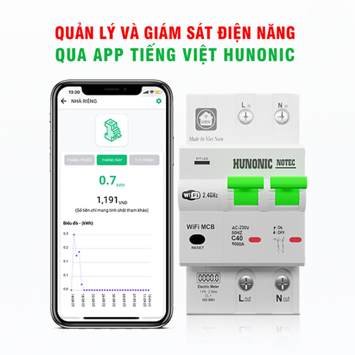 Aptomat Thông Minh Đo Năng Lượng Hunonic Notec | Aptomat Wifi Thông Minh | OCEANSMART.VN