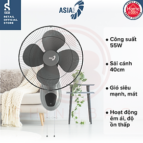 THÔNG TIN VỀ SẢN PHẨM QUẠT TREO TƯỜNG ASIAVINA L16021 Thông số kỹ thuật Sải cánh: 40cm Công suất: 55W Dòng điện: 220V-50Hz Lượng gió: 88 m3/phút Hệ số tiết kiệm năng lượng: 1,24