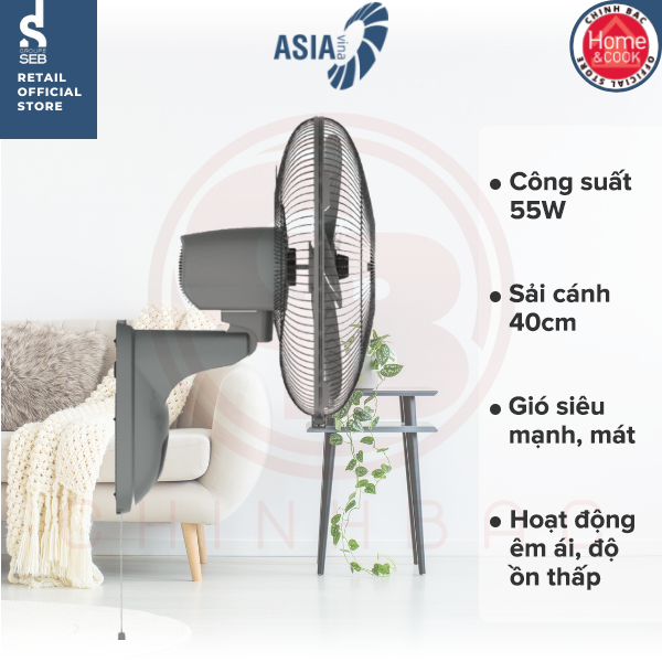 Quạt treo Asia VY377790 có cánh quạt 40 cm lớn, công suất 55W hoạt động mạnh mẽ, dễ dàng tủy chỉnh mức gió, sử dụng motor bạc thau có độ bền cao, cho hiệu suất
