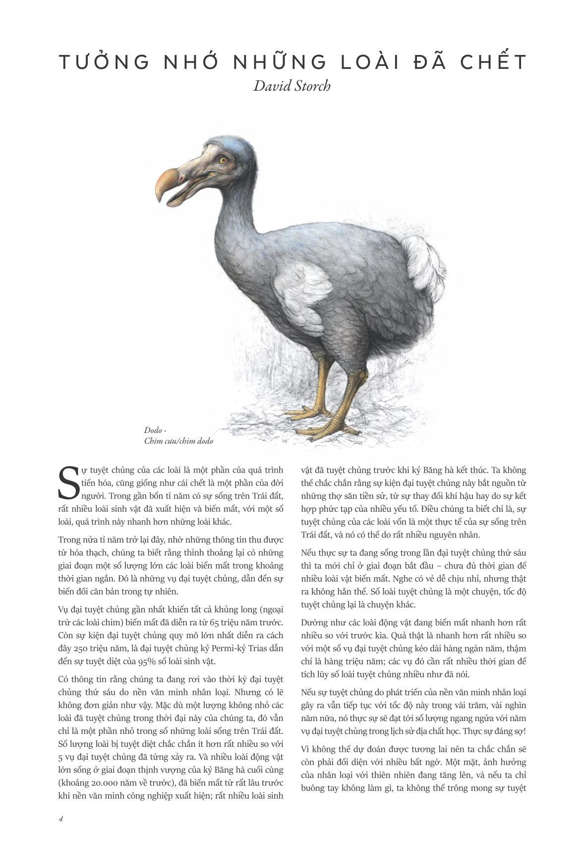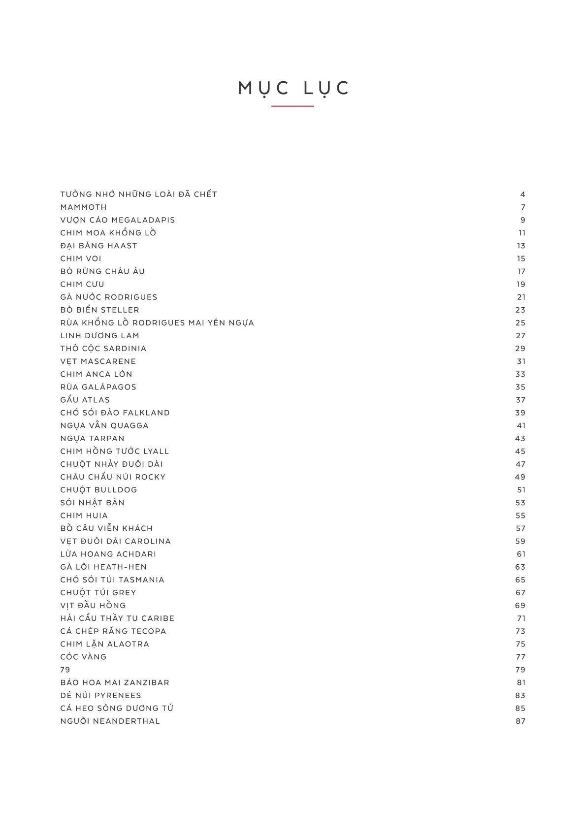 Trong cuốn sách này, nhà thơ nổi tiếng Radek Malý đã làm sáng tỏ thực tế đáng báo động này bằng cách kể những câu chuyện về một số loài đã tuyệt chủng và nguyên nhân dẫn tới sự tuyệt diệt đáng buồn.
