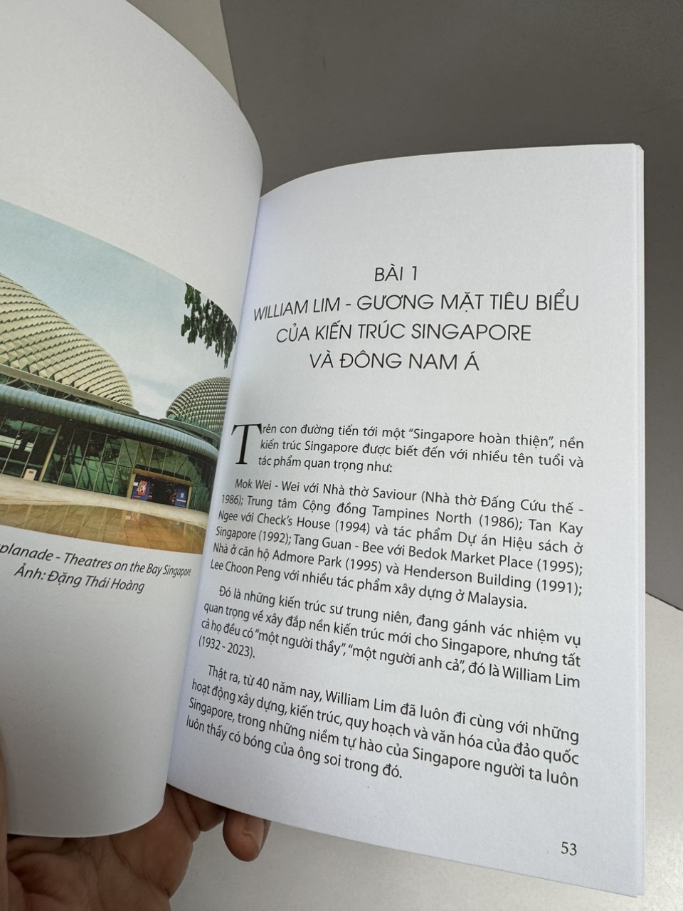 Trong bảng Tài liệu tham khảo, ở Australia có cuốn Australian Architecture Now, Nhà xuất bản Thames & Hudson, (2000) và ở Singapore có cuốn Singapore Architecture, Nhà xuất bản Periplus (2004) là loại sách kinh điển, viết rất cẩn thận và nghiêm túc, những người viết bình thường sẽ không thể viết được kiểu này và cũng khó có điều kiện để’ cho ra đời những cuốn sách như thế.