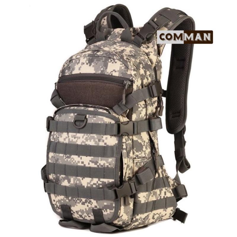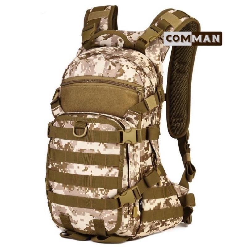 Ba lô đa năng COMMAN_chiến thuật_kháng nước Hàng chính hãng COMMAN Model: S435 Chất liệu : Oxford chống thấm nước và chống mài mòn Kích thước : 17 x 32 x 45cm Trọng lượng : 1.35 kg Có ngăn mở rộng để đựng những vật cồng kềnh Có thể dùng cho các hoạt động : chạy bộ, đua xe đạp, trekking, leo núi …