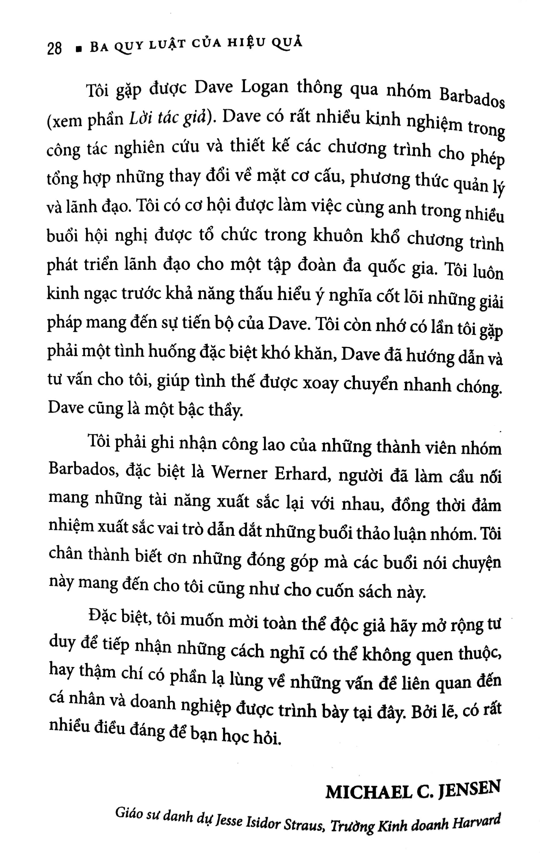 - Làm thế nào để vượt qua những giới hạn của bản thân? Đây là những câu hỏi khiến hai chuyên gia trong lĩnh vực quản trị Steve Zaffron và Dave Logan băn khoăn và tìm kiếm. Nỗ lực của họ đã gặt được thành quả là “Ba quy luật của hiệu quả”. Tổng hợp từ nghiên cứu của nhiều ngành, Zaffron và Logan cho đưa ra mô hình mới mẻ về hiệu quả, tìm ra ba quy luật chung nhất chi phối hành vi và suy nghĩ của con người, qua đó tạo động lực để các cá nhân và tổ chức chuyển đổi, làm chủ cuộc chơi và tạo ra hiệu suất đột phá.