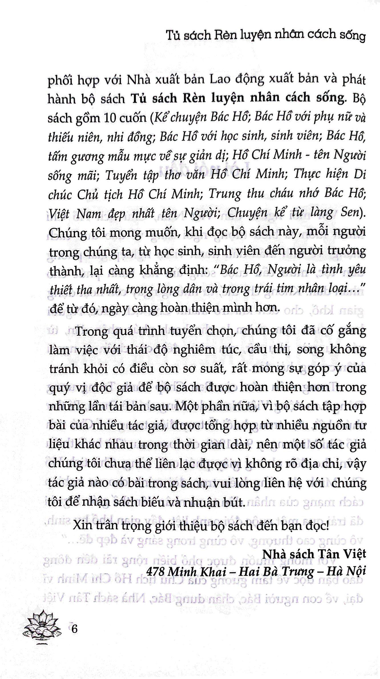 Nằm trong "Tủ Sách Bác Hồ", Cuốn sách “Bác Hồ Với Phụ Nữ Và Thiếu Niên Nhi Đồng”, là một tác phẩm viết về những Câu chuyện của Bác cùng với Phụ Nữ và các em thiếu niên Nhi Đồng. Cuốn sách do Nhà sách Tân Việt và NXB Văn Học liên kết hợp tác phát hành. Sách được xuất bản lần đầu năm 2017 và đã được công chúng nồng nhiệt đón nhận. Cuốn sách đã trở nên thân thiết với các bạn đọc với nhiều lứa tuổi khác nhau, đặc biệt là các cháu thiếu niên.