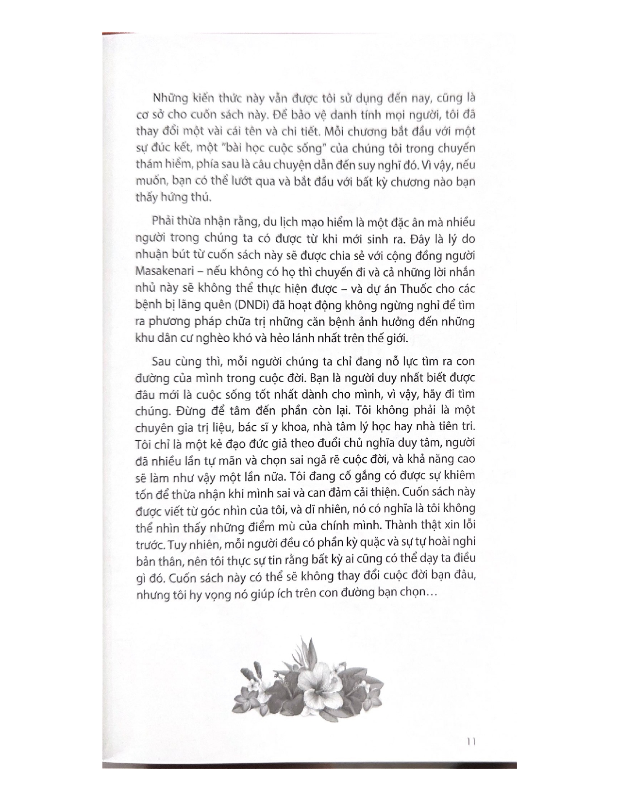 - Giới thiệu Bài Học Cuộc Đời Từ Rừng Rậm Amazon - Kỹ Năng Sống Từ Một Chuyến "Phượt" Kinh Điển “Tôi thường nghĩ, mọi người đang chạy trốn hoặc hướng tới một điều gì đó. Còn với tôi, thành thật mà nói, tôi đang chạy trốn cảm giác rằng “bằng cách nào đó, tôi đang không tận dụng tối đa cuộc đời mình”. Một nỗi sợ hãi về việc không sống trọn vẹn. Trong thế giới hối hả, bận rộn này, thật dễ cảm thấy choáng ngợp - tôi cũng vậy. Nỗi sợ hãi thôi thúc tôi và đó là lý do tại sao tôi lao mình để chèo 1.014km sông Essequibo thuộc Guyana. Tôi hy vọng những trang tiếp theo sẽ mang đến cái nhìn sâu sắc hơn cho những ai từng cảm thấy như vậy, cũng như giúp ích cho cuộc hành trình sắp tới của bạn. Cuốn sách này có thể sẽ không thay đổi cuộc đời bạn đâu, nhưng tôi hy vọng nó giúp ích trên con đường bạn chọn…”