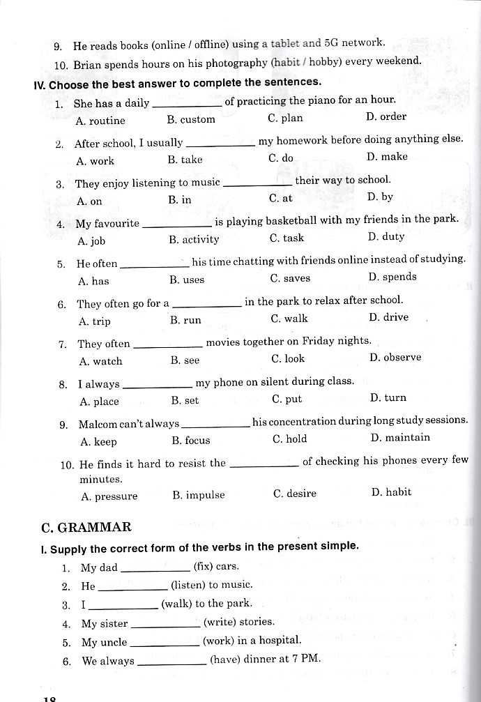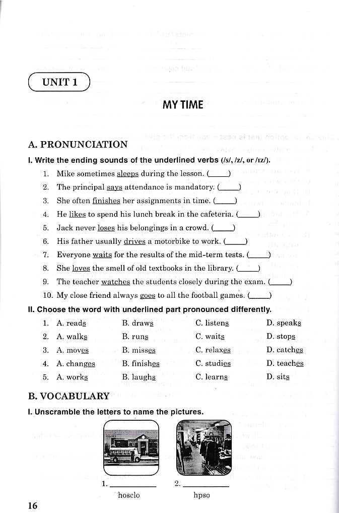 Bài tập dành cho mỗi đơn vị bài học bao gồm: