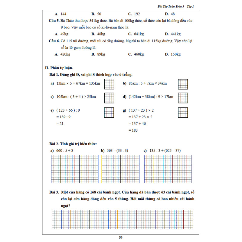 Combo Bài Tập Tuần và Đề Kiểm Tra Toán, Tiếng Việt Lớp 3 (Tùy chọn theo Chương trình SGK mới) Lưu ý: Chọn đúng chương trình học vả kỳ học ở các 2 mục tùy