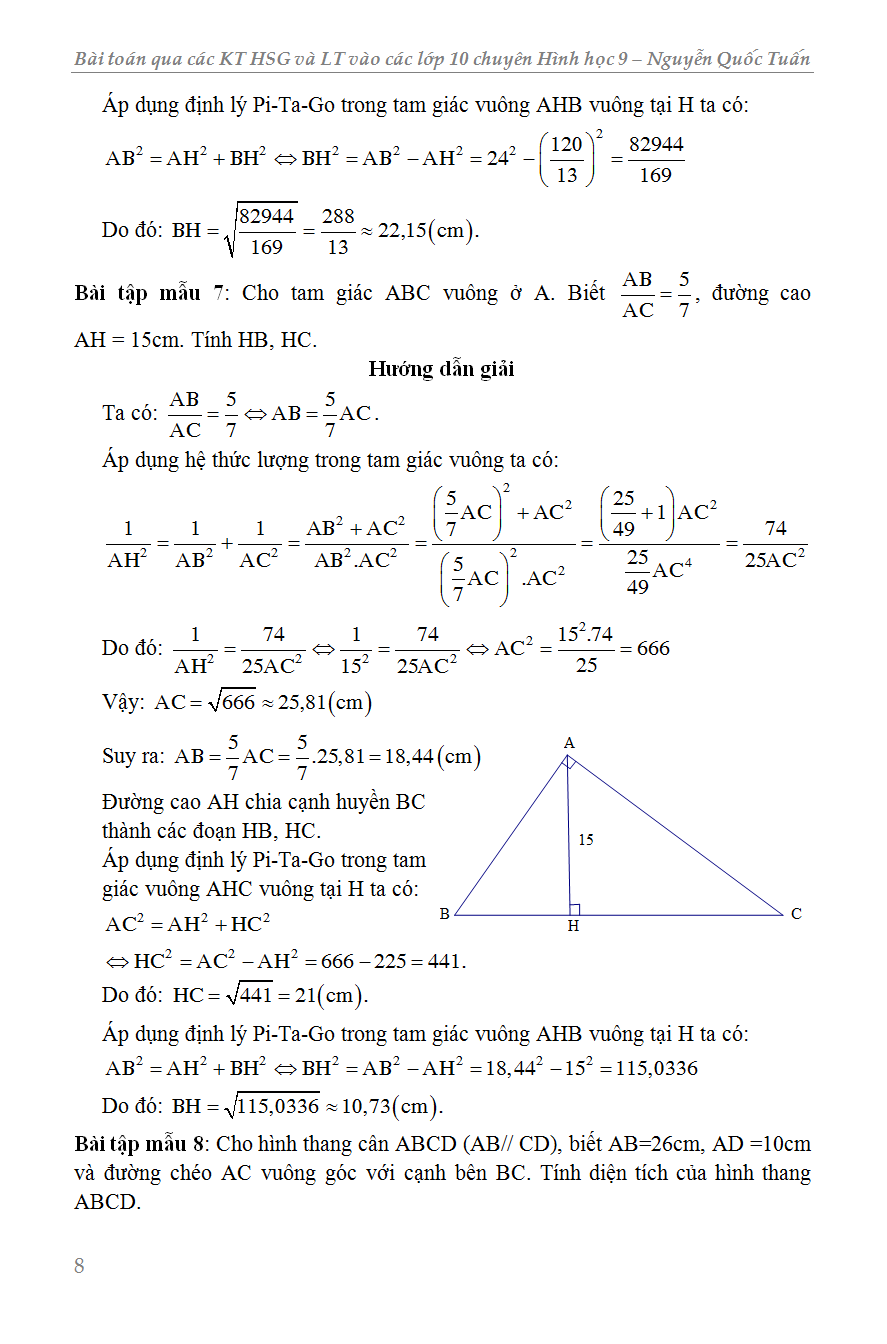 Trong quyển sách Bài Toán Qua Các Kì Thi Học Sinh Giỏi Và Luyện Thi Vào Lớp 10 Chuyên Hình Học 9, chúng tôi chia theo từng chương học trong chương trình hiện hành: