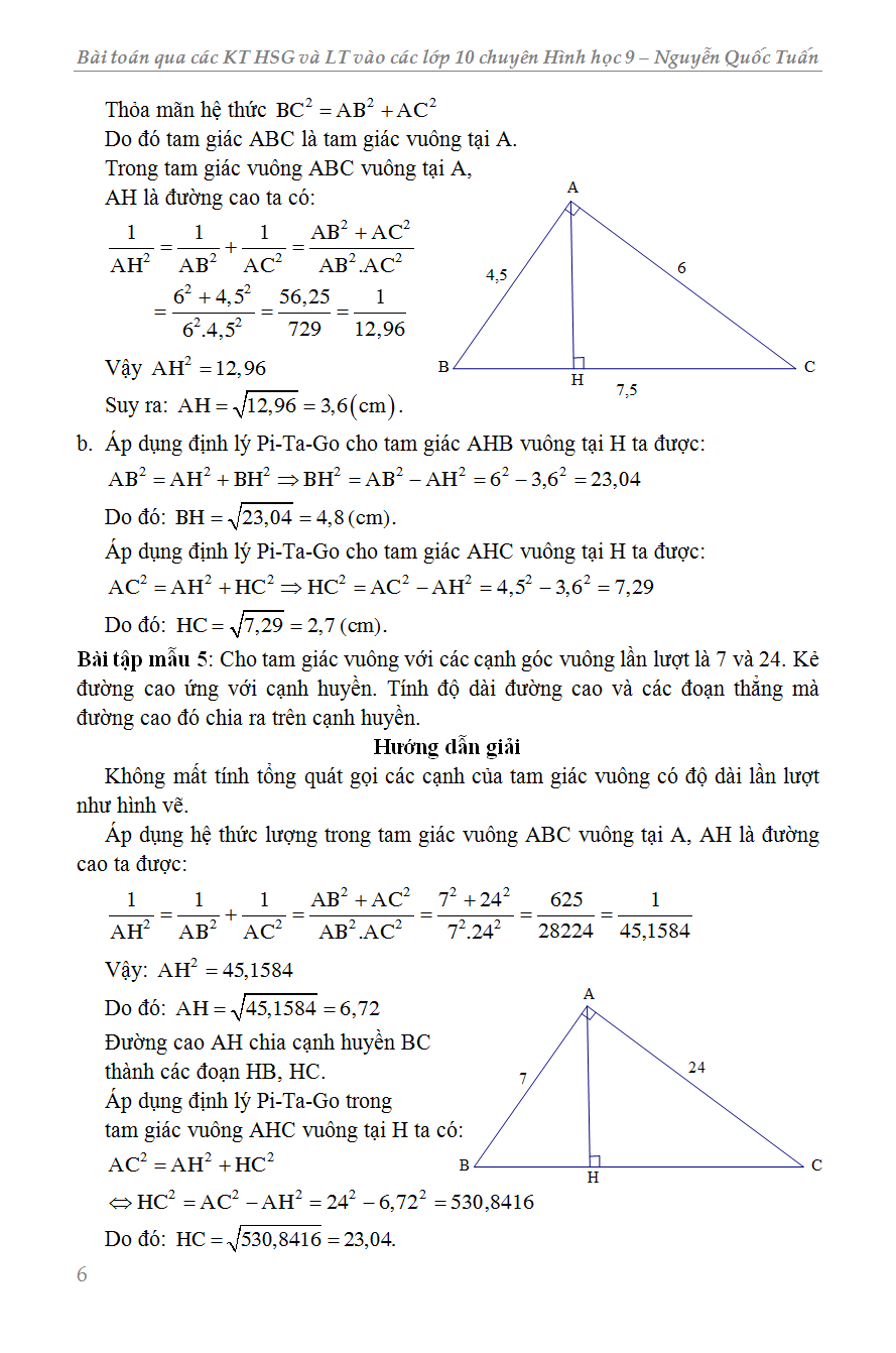Bài Toán Qua Các Kì Thi Học Sinh Giỏi Và Luyện Thi Vào Lớp 10 Chuyên Hình Học 9
