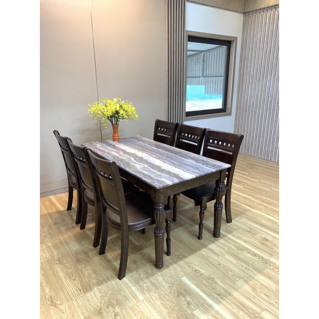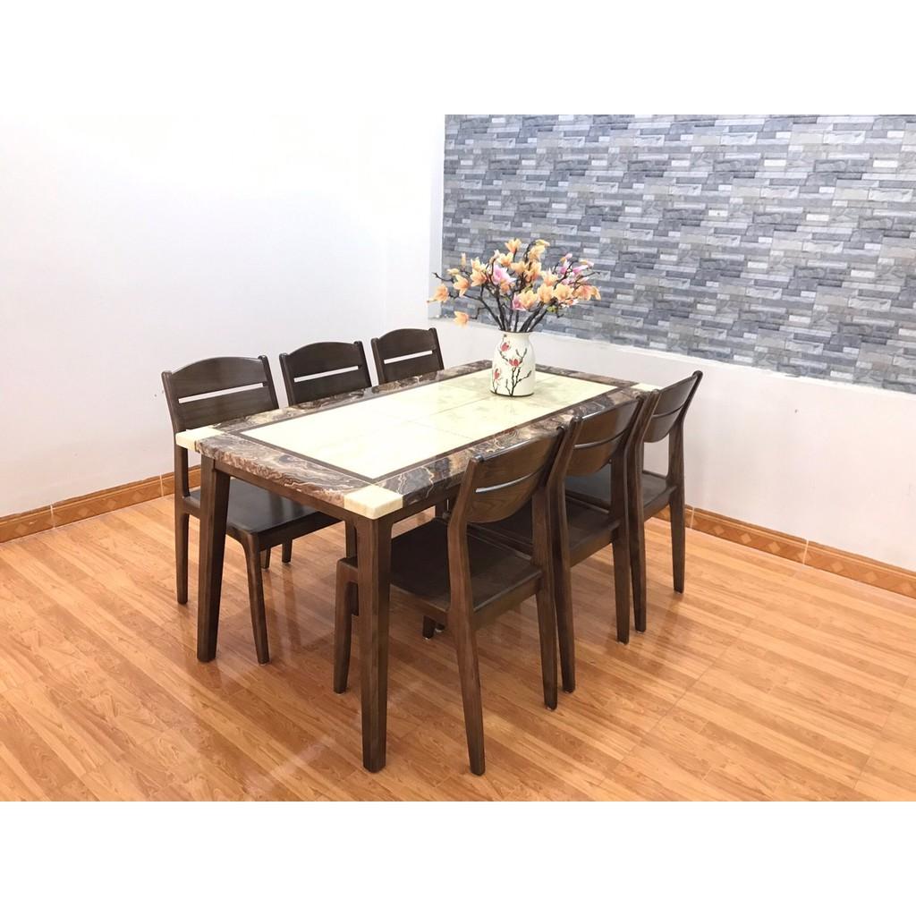 Bộ Bàn ăn 6 ghế bàn tràn mặt đá với quy cách thiết kế tiêu chuẩn, đảm bảo đem lại sự thoải mái, ấm cúng cho phòng bếp nhà bạn.