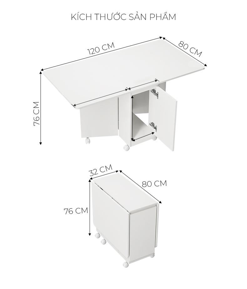*** Quý khách hàng vui lòng chọn sản phẩm nhà bán TUNDO để nhận được sản phẩm đúng với chất lượng *** Kích Thước Phủ Bì ( Ngang x Sâu x Cao )cm - Bàn Gấp Cánh