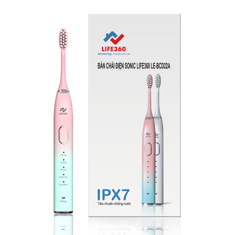 - Bàn chải điện Sonic LIFE360 LE-BCD22A là dòng bàn chải điện tự động phiên bản cao cấp đến từ thương hiệu Life360. Sản phẩm có khả năng làm sạch các mảng bám cứng đầu trên răng bằng công nghệ sóng âm Sonic.