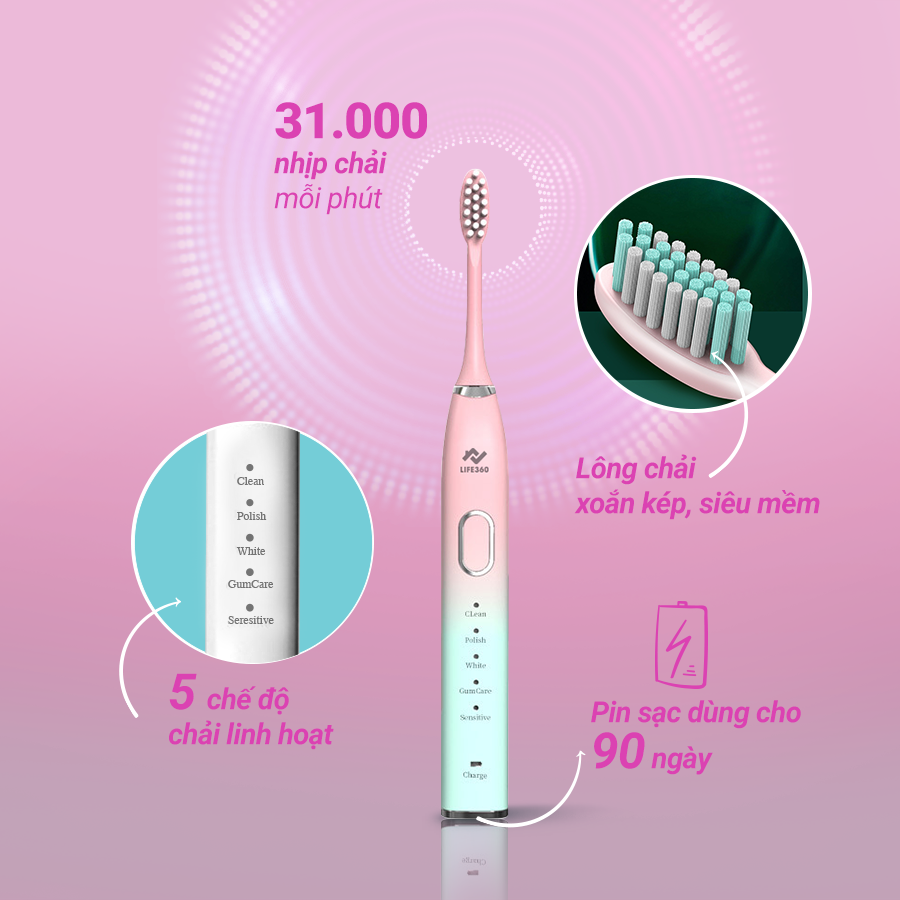 Bàn Chải Điện Sonic Life360 - Thay đổi thói quen chăm sóc răng miệng 2022