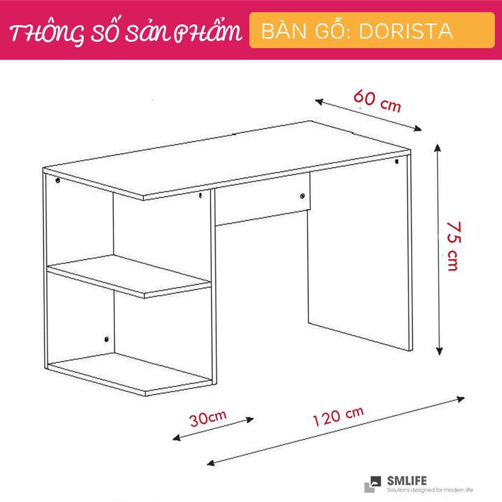 Mang đậm phong cách nội thất đơn giản, bàn làm việc gỗ Dorista là một sự bổ sung hoàn hảo cho phòng làm việc, phòng đọc sách của bạn. Bàn làm việc Dorista được thiết kế với nhiều tầng kệ và ngăn kéo mang đến nhiều không gian giúp bạn tổ chức sách vở và các vật dụng trang trí thoải mái. Sản phẩm là một giải pháp phù hợp cho những văn phòng hoặc căn hộ diện tích nhỏ. Sử dụng vật liệu ván ép công nghiệp MDF chống ẩm phủ Melamine cao cấp giúp bàn làm việc, bàn học gỗ SMLIFE có độ bền cao, chống trầy và chống ẩm rất tốt. Bạn có thể tự lắp đặt sản phẩm dễ dàng với các phụ kiện và hướng dẫn đi kèm.