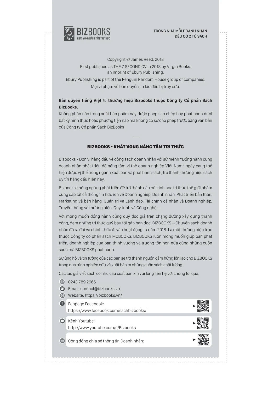 Tất cả mọi người đều có thể viết một CV gây ấn tượng mạnh với nhà tuyển dụng trong vòng bảy giây sau khi họ mở nó ra, kể cả bạn. Tất cả những gì bạn cần là hiểu rõ bản thân, có cách sắp xếp thông tin hợp lý và khả năng thể hiện giá trị của bản thân để bản CV truyền đạt những điều đó tới nhà quản lý tuyển dụng ngay lập tức sau khi họ nhận nó. Khi bạn đã khám phá ra cách thực hiện điều này, Bizbooks tin rằng bạn đã có đủ hành trang để tham gia buổi phỏng vấn cho công việc mà bạn mơ ước!
