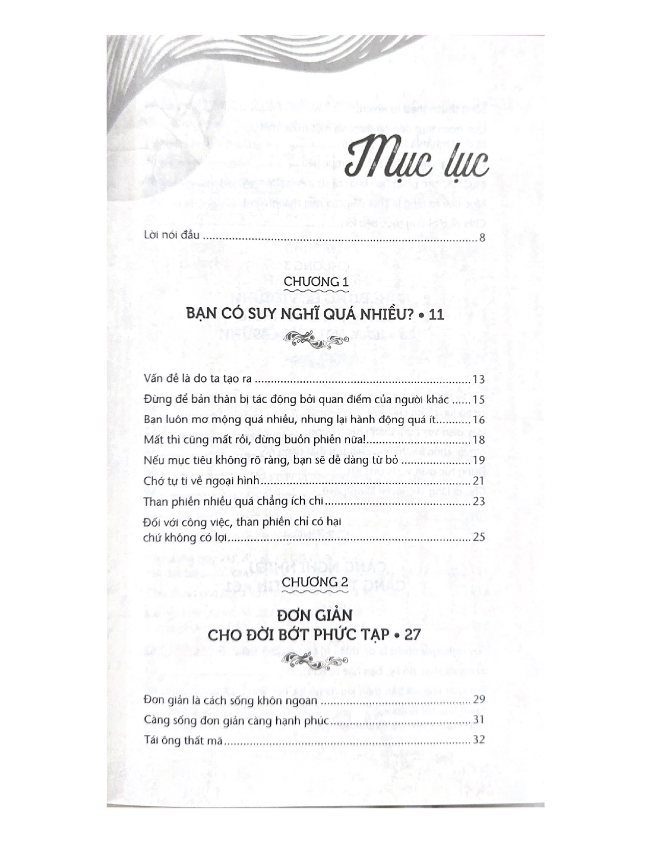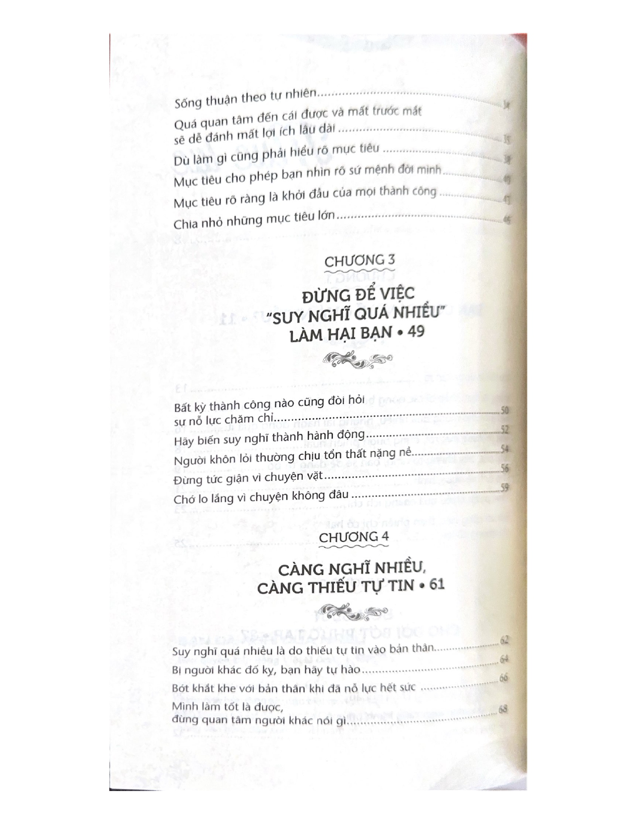 - Giới thiệu Bạn Đã Nghĩ Quá Nhiều Bạn đơn giản thì thế giới sẽ đơn giản”, đây là chân lý đã được nhiều người đúc kết. Những người suy nghĩ nhiều thường là do thiếu tự tin vào bản thân. Chẳng hạn, họ sợ mình có nhiều khuyết điểm, sợ người khác chê cười hoàn cảnh gia đình, sợ mình làm không tốt,... rồi sau đó tự mình nghĩ ra những hậu quả đáng sợ. Thực ra, điều này cũng cho thấy, thế giới của mỗi người là sự phản chiếu nội tâm của chính họ, và những khó khăn gặp phải chính là tâm thế của họ đối với thế giới. Cho dù mọi việc có phức tạp đến mấy, nếu bạn có thể nhìn chúng một cách đơn giản, thì cũng sẽ giải quyết dễ dàng. BẠN ĐÃ NGHĨ QUÁ NHIỀU sẽ giúp bạn thay đổi tâm thế và điều chỉnh góc nhìn, để: