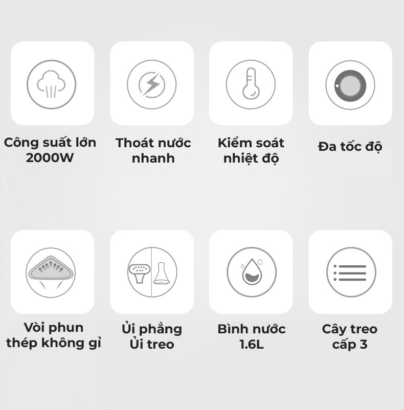 - Bảo hành điện tử đối với tất cả đơn hàng trên Tiki qua mã vận đơn ️ CÂU HỎI THƯỜNG GẶP Câu hỏi: Bình nước có tháo rời được không? Trả lời: Có, bình nước của bàn ủi có thể tháo rời và thêm nước dễ dàng. Câu hỏi: Lắp đặt như thế nào? Trả lời: Kèm theo trong thùng hàng sẽ có hướng dẫn sử dụng & lắp đặt, khách hàng có thể liên hệ shop nếu gặp khó khăn khi lắp đặt. Câu hỏi: Có ủi được quần áo dày không? Trả lời: Có, bàn ủi có thể ủi được quần áo dày. Tuy nhiên sẽ mất thời gian hơn. Câu hỏi: Tại sao cây treo thấp thế? Trả lời: Bạn hãy chú ý, cây treo có 3 nấc, hãy đảm bảo đã mở khóa và kéo hết 3 nấc ra. Bàn ủi có độ cao tối đa khoảng 1.55m.