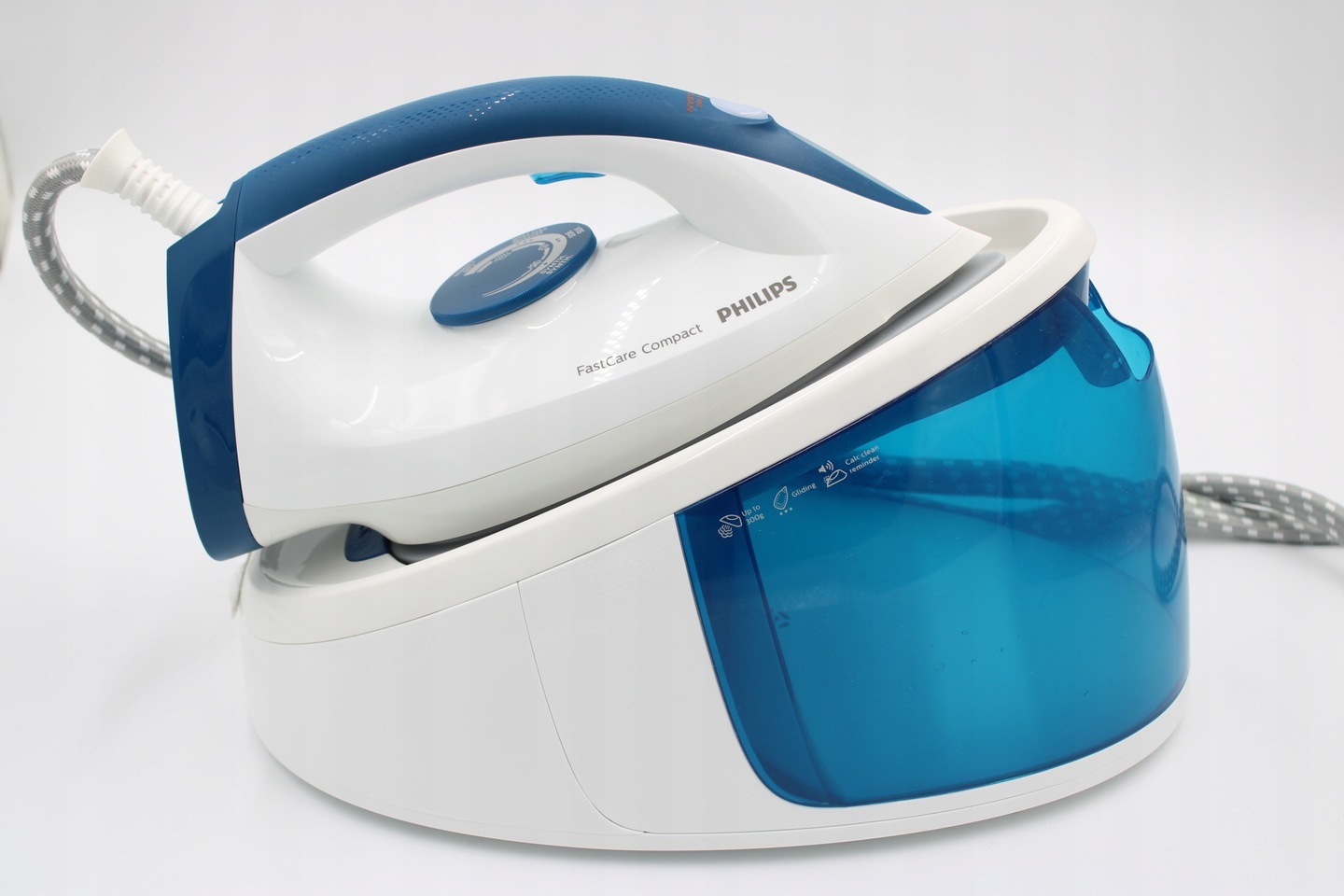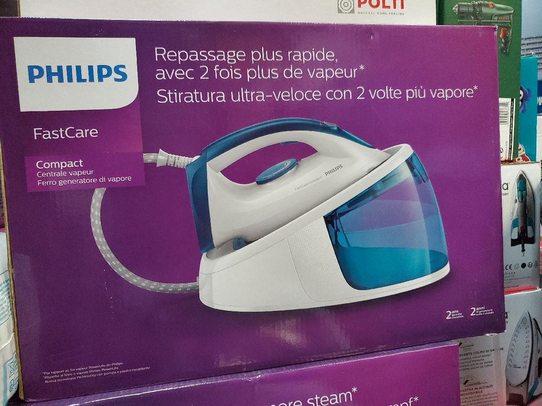 Bàn là hơi nước Philips GC6722/20 FastCare Compact 2400 ( màu xanh) áp lực nước lên đến 300 cực mạnh. Chiếc bàn là philip được người Đức đánh giá 4,9*/5 Gấp đôi lượng hơi nước