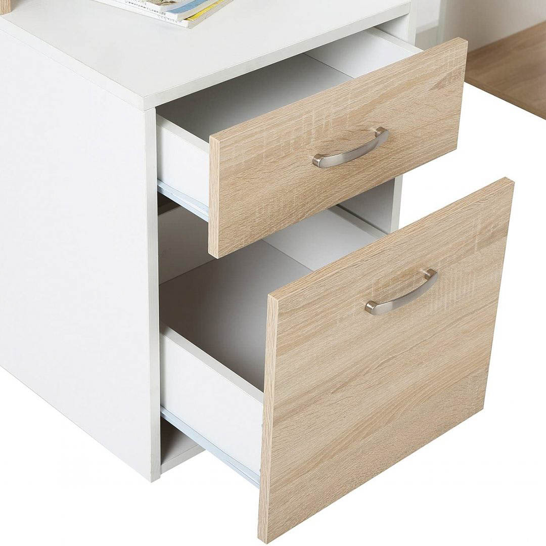 - Tên sản phẩm: Bàn làm việc kèm tủ hồ sơ tiện lợi - Chất liệu: Mặt bàn gỗ mdf dày 30mm phủ melamin chống xước - Khung thép chống gỉ phủ sơn tĩnh điện - Màu sắc: Gỗ trắng - khung chân đen - Kích thước: Bàn 120x60x75cm - Tủ 60x40x69cm - Công năng: Là mẫu bàn làm việc có thiết kế hiện đại kèm tủ hồ sơ đa năng phù hợp tại nhà và cả văn phòng làm việc