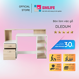 Mang đậm phong cách nội thất đơn giản, bàn làm việc gỗ SMLIFE Dledum là một sự bổ sung hoàn hảo cho phòng làm việc, phòng đọc sách của bạn. Bàn làm việc Dledum được thiết kế với nhiều tầng kệ và ngăn kéo mang đến nhiều không gian giúp bạn tổ chức sách vở và các vật dụng trang trí thoải mái. Sản phẩm là một giải pháp phù hợp cho những văn phòng hoặc căn hộ diện tích nhỏ. Sử dụng vật liệu ván ép công nghiệp MDF chống ẩm phủ Melamine cao cấp giúp bàn làm việc, bàn học gỗ SMLIFE có độ bền cao, chống trầy và chống ẩm rất tốt. Bạn có thể tự lắp đặt sản phẩm dễ dàng với các phụ kiện và hướng dẫn đi kèm. ĐẶC ĐIỂM SẢN PHẨM: