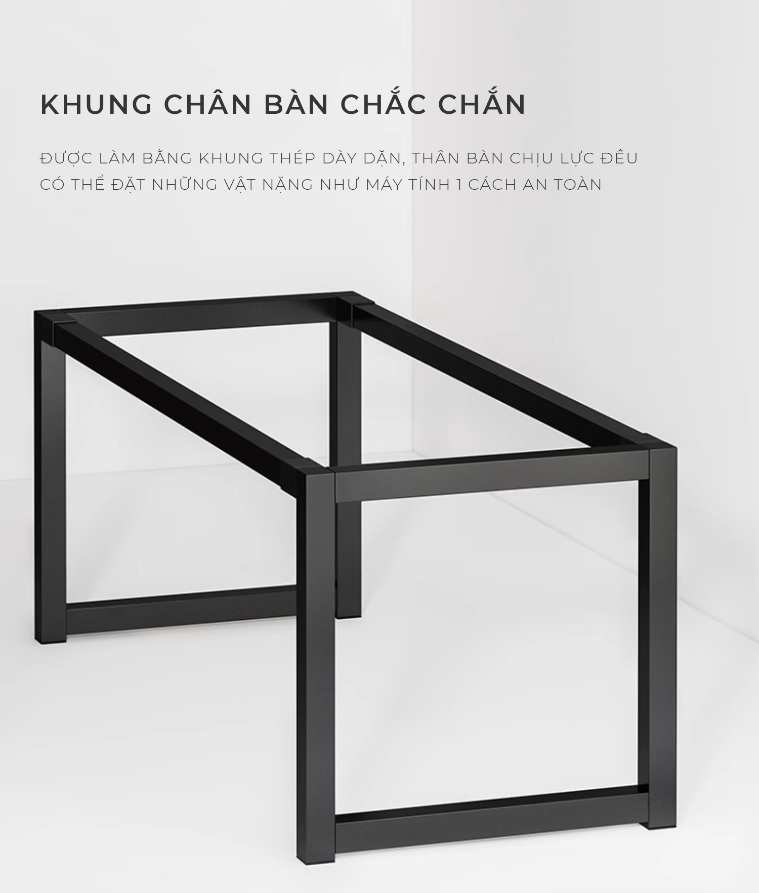 Chất liệu: Mặt bàn sản xuất từ gỗ MDF phủ melamin cao cấp chống xước chống nước bề mặt sáng bóng. Khung thép chống ghỉ sơn tĩnh điện