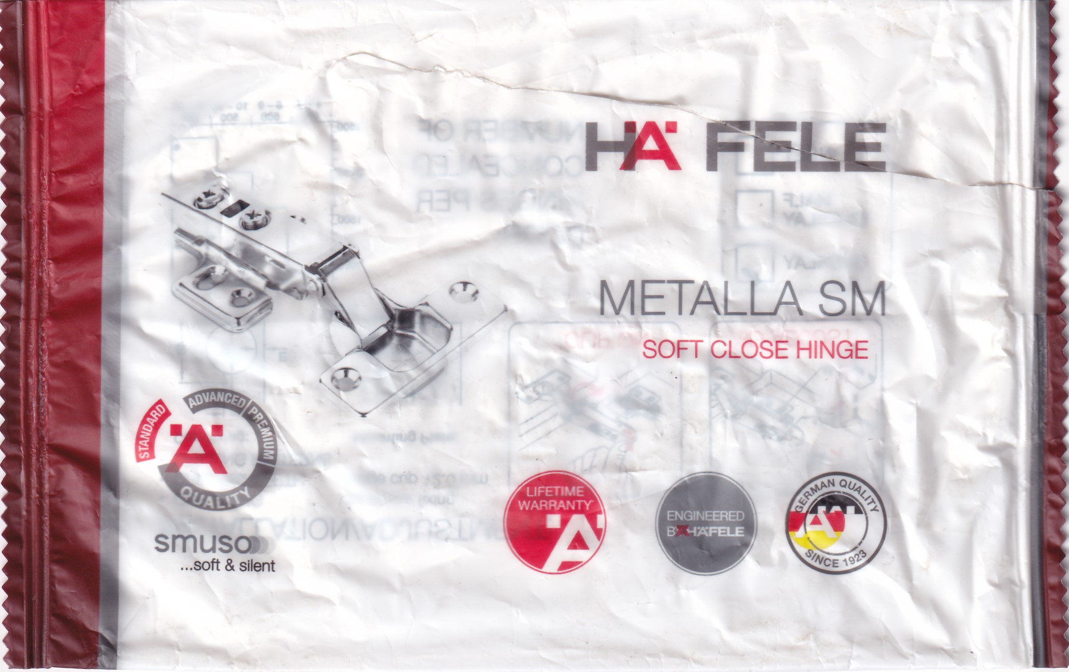✨Bản lề giảm chấn Hafele Metalla SM 110° DIY, thép, lắp trùm ngoài, thẳng - 493.03.020