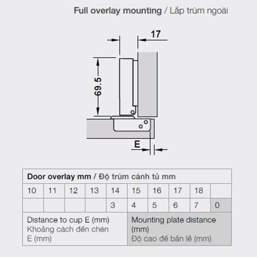 Chiều sâu lỗ khoan: Chén bản lề 12 mm