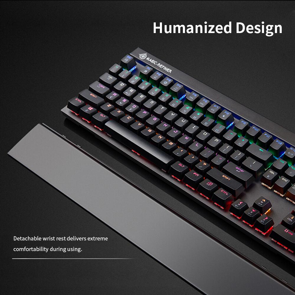 MAGIC-REFINER Mechanical Gaming Keyboard is not just nice appearance, it also has great ergonomics. The aircraft-grade aluminum / ABS casing design and the mechanical keys stand up to tough conditions. Customized mechanical switches design, durability