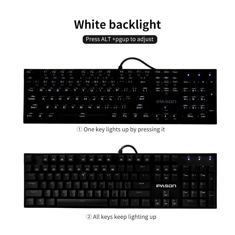 IPASON Mechanical Keyboard is designed for game player. 104 N-key rolloverkey with backlit gives you ultimate game experience. Mechanical blue switchbrings quick response and let you enjoy smooth game playing. Features: Mechanical Blue Switch To